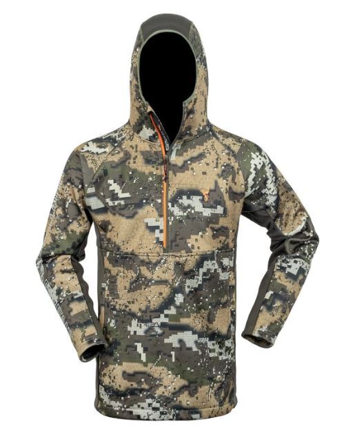 If you’re venturing on mid-winter alpine excursions or warm spring/summer missions the all-purpose, all-season, Zenith Hood is an essential hunting mid-layer top. An integrated slimline hood has a skull cap design, providing complete insulation without any uncomfortable bulk when paired with a barrier layer. In particularly cold conditions, you can lose up to 50% of your body heat through your head. Being able to retain body heat and transfer moisture is key to staying safe in the mountains.